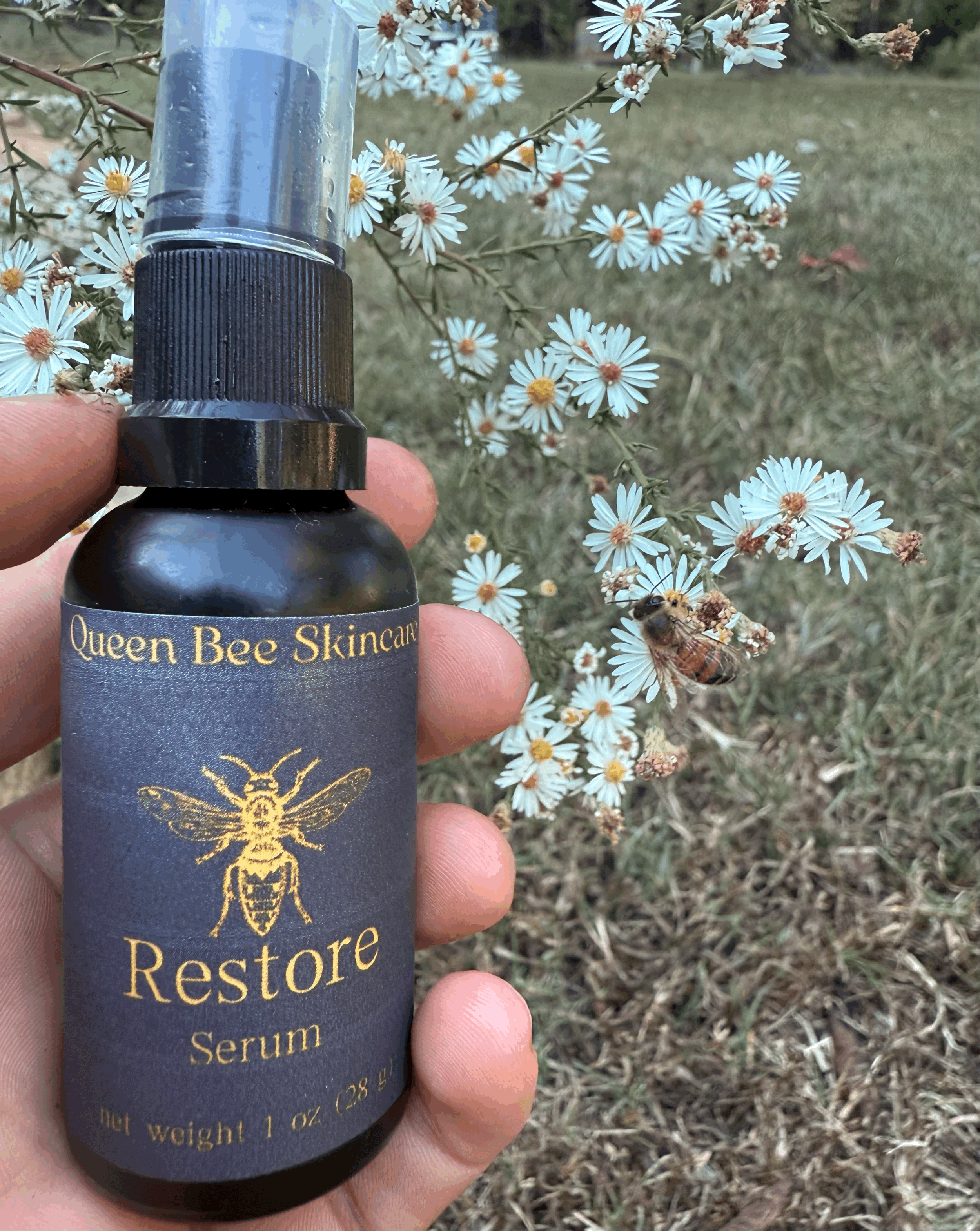 Ingredients: Shea butter*, camellia seed oil*, baobab oil*, honey, butterfly pea flowers*, blue tansy oil*, myrrh oil*, lavender oil*, frankincense oil*, rose geranium oil*, helichrysum oil*, carrot oil*