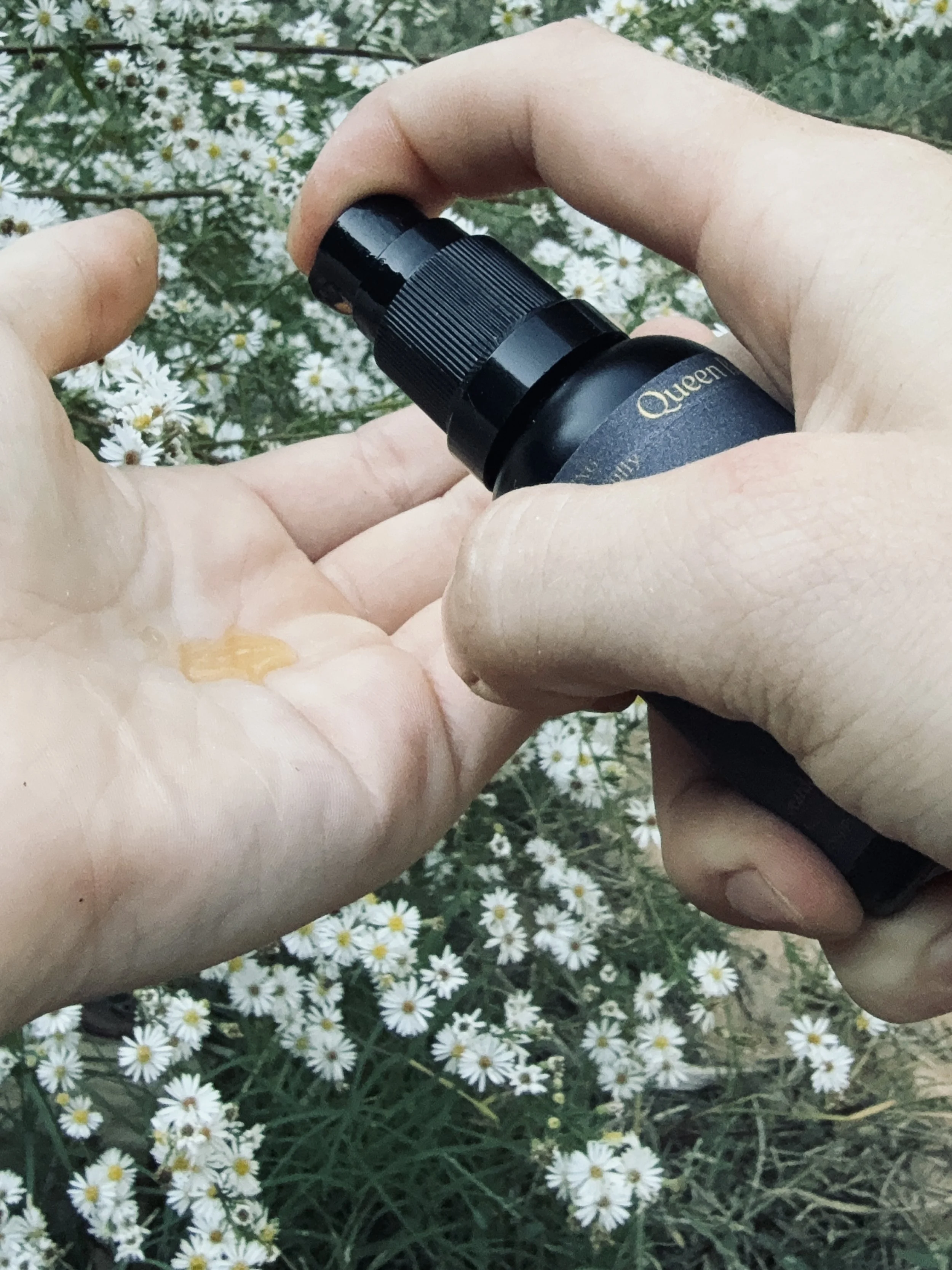 Scoop a pea sized amount and warm between your fingers before massaging over your face and neck.